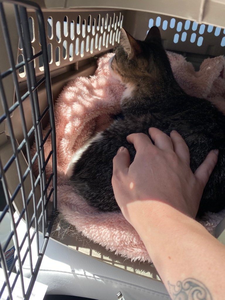 I jumped in the car and headed to my baby boy! I picked him up and opened his kennel. He was not placed in his kennel comfortably, so I repositioned him. Before taking off I said, “hi big boy! Hi Rocky.” He turned his head and looked at mommy. I had a sigh of relief. The doctor gave him some antibiotics which had some pain medicine in it. It was a bit of a sedative, so it allowed him to be more himself.